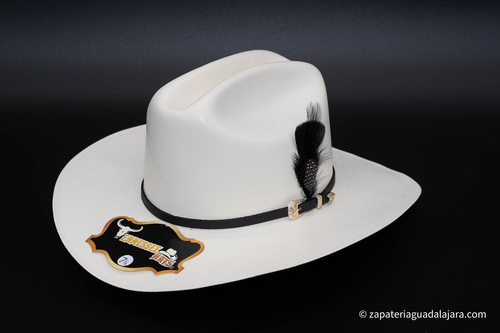 The TENNESSEE 10,000x BLACK FEATHER HAT is a premium cowboy hat made with the highest quality materials and expert craftsmanship. Handmade for ultimate precision and durability, this hat is perfect for any cowboy or cowgirl looking to make a statement. Stand out with the best quality cowboy hat on the market.