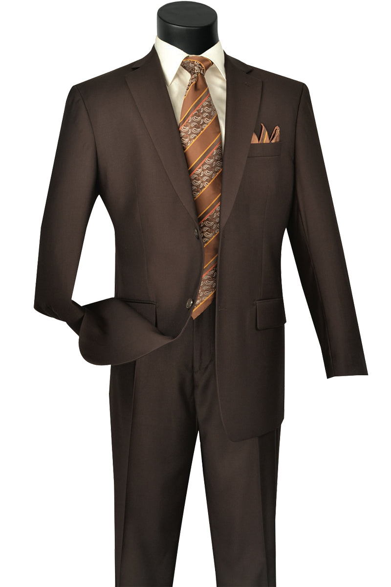 Mens 2 Button Classic Fit Pleated Pant Suit in Brown