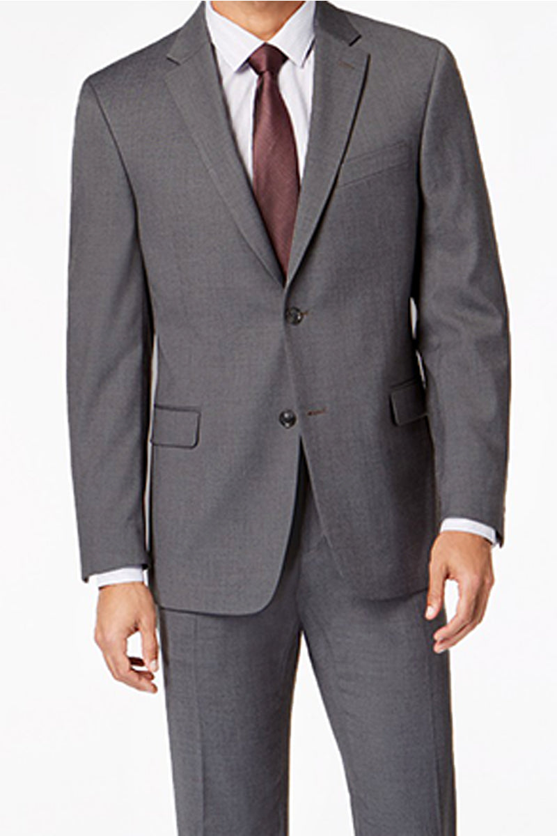 This modern fit 2 button suit features a notch lapel, side vents, flat front pants, and a...