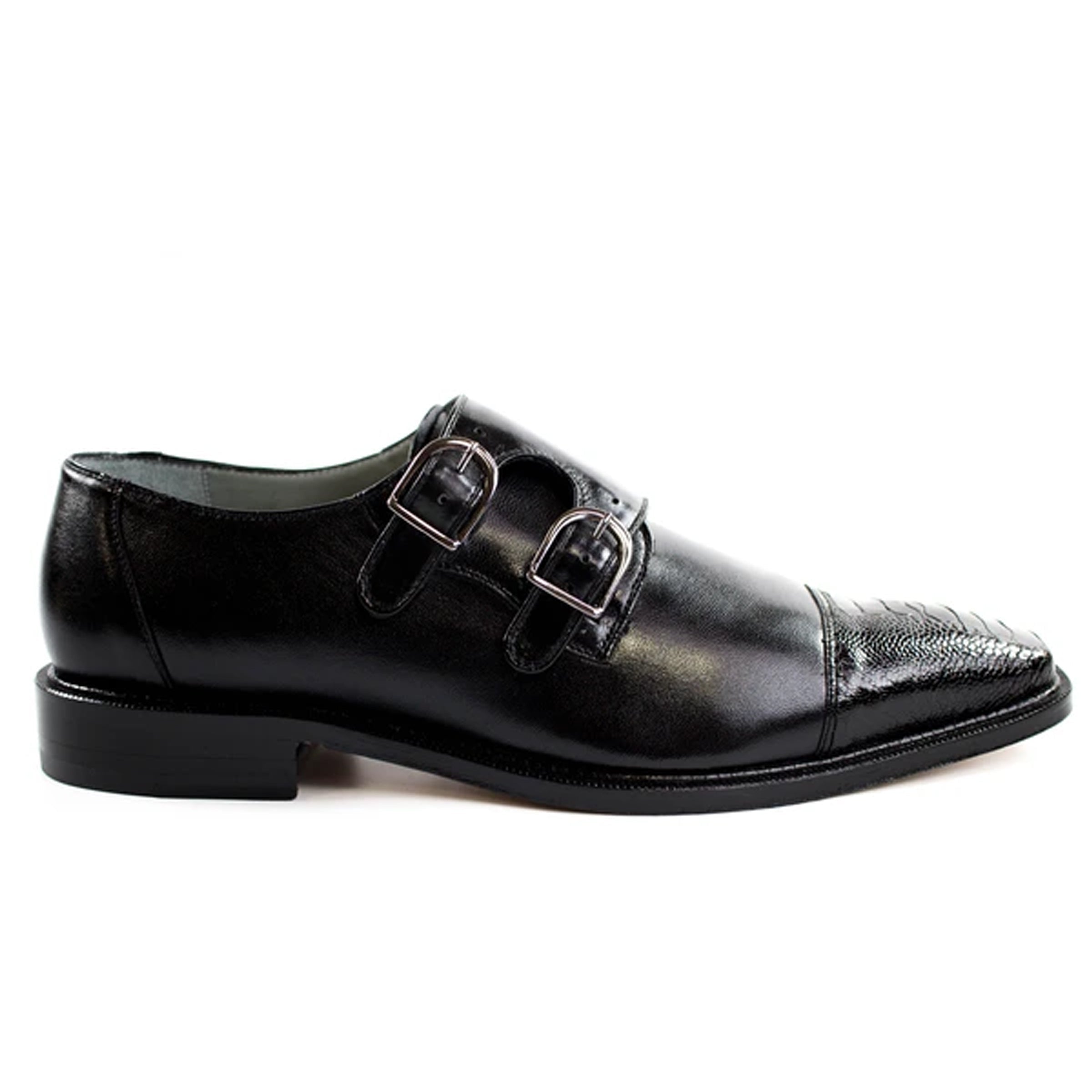 These Belvedere Amico dress shoes feature a double monk strap closure and a calssic cap toe design. The sides of the shoe are made from fine soft Italian calf skin, and the cap in genuine ostrich leg skin. The sole is genuine leather. Comes with a cushioned leather insole.