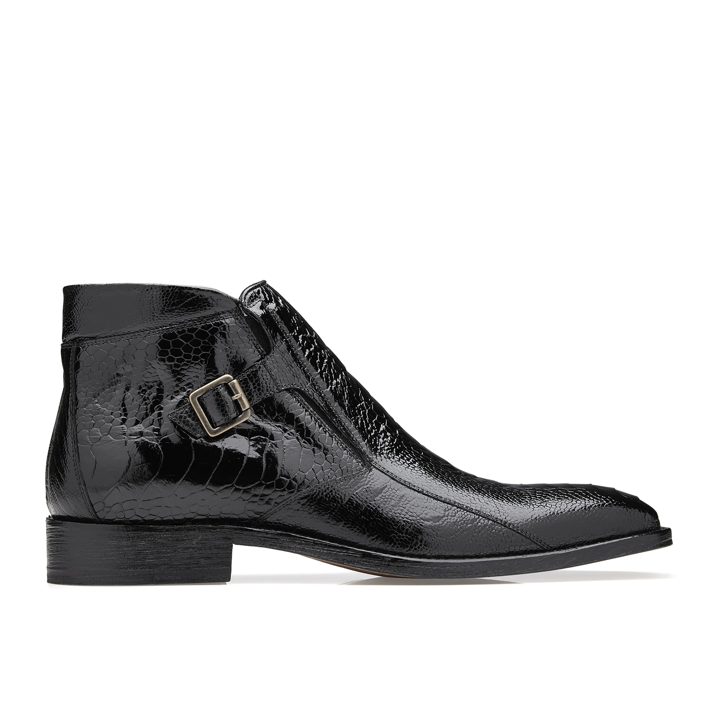Mens Belvedere Gregg Ostrich Leg Monk Strap Dress Boot in Black