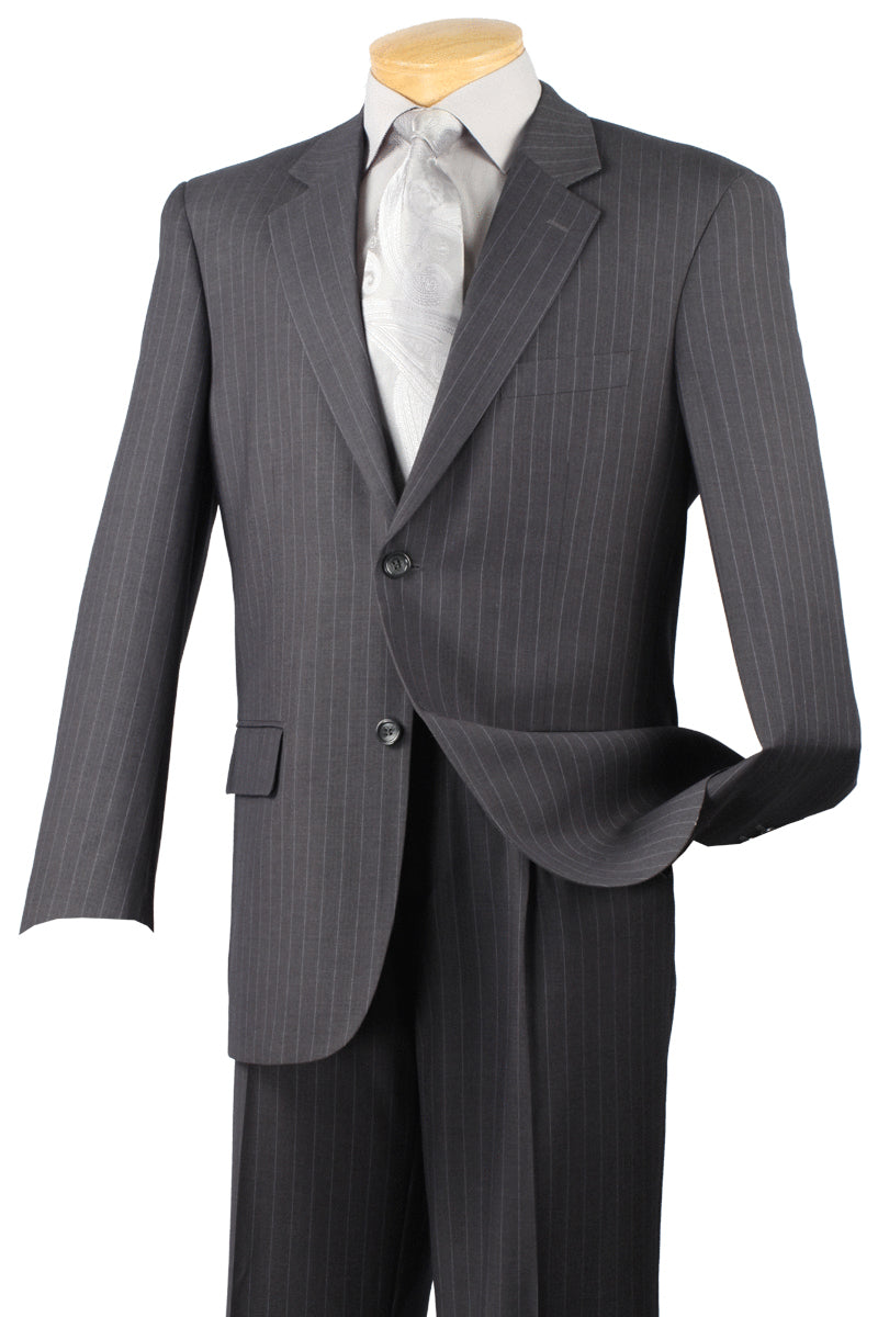 Mens Modern Fit 2 Button No Pleated Flat Front Pants Pinstripe Suit in Charcoal