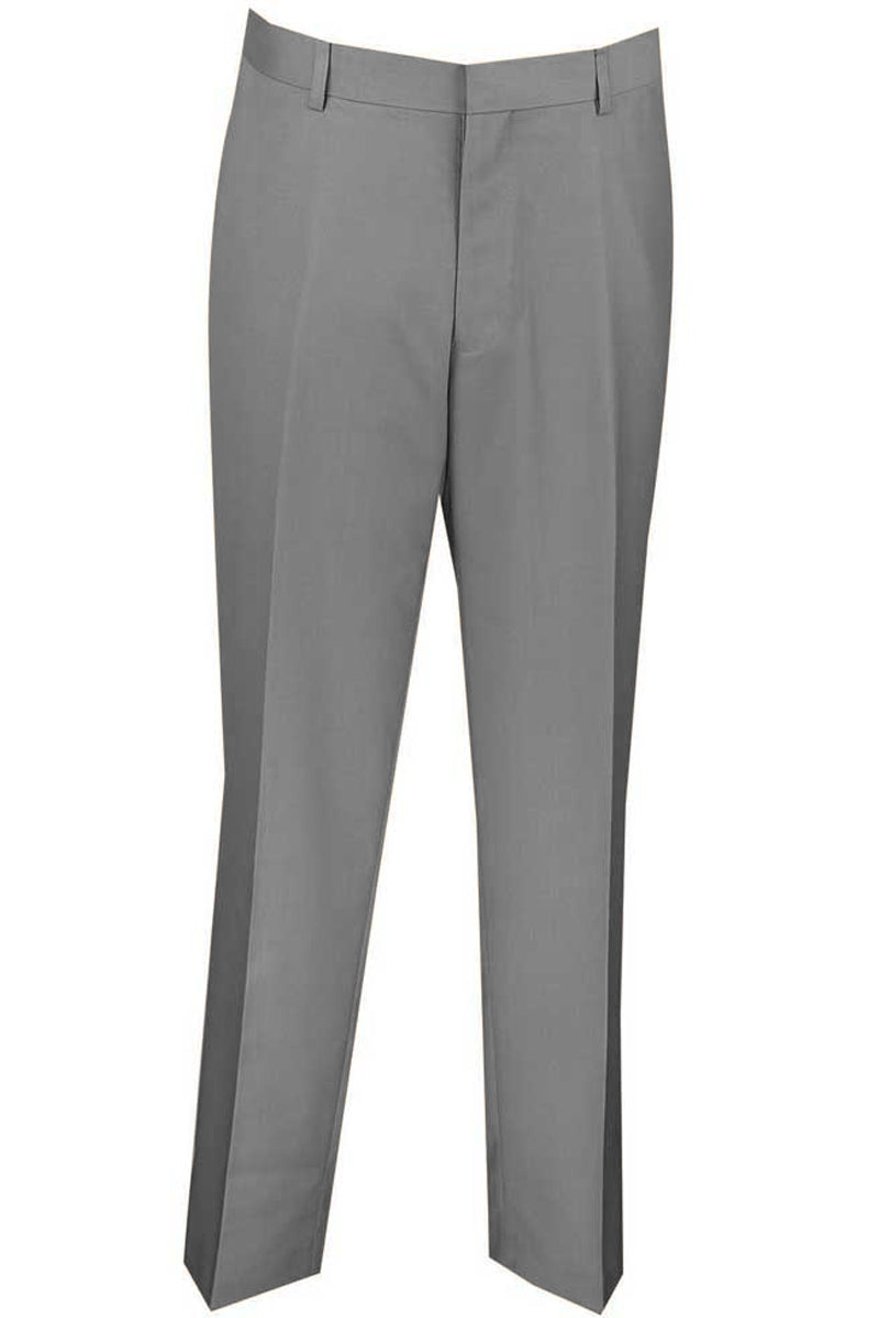 Mens Slim Fit Wool Feel Flat Front Dress Slacks in Grey